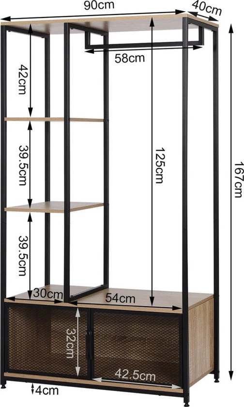 Featuring a metal clothes rail and spacious storage compartments, ideal for coats, shoes, bags and more. Perfect for an organised space.