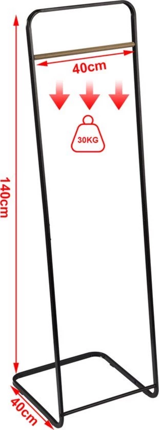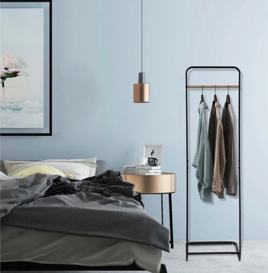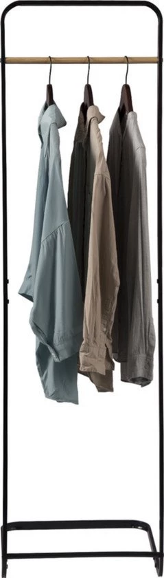 Clothes rack with coat rack - sturdy metal frame - with wooden details - industrial and stylish - black - 40x40x140 cm (8721085261057)