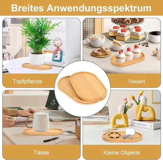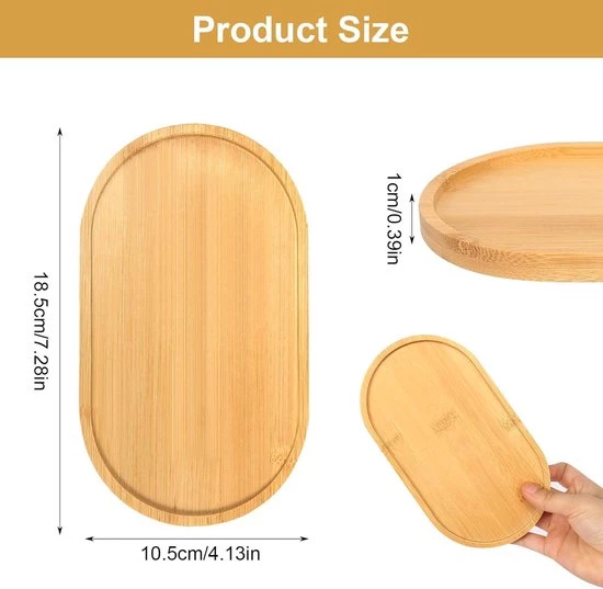 Product specifications: - Material: bamboo - Dimensions: 19.5 x 10 x 1 cm - Contents: 8 oval wooden trays