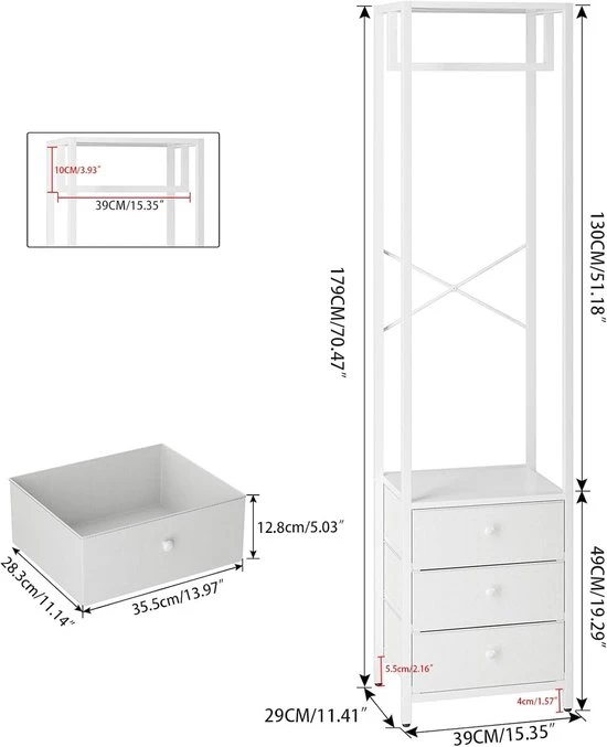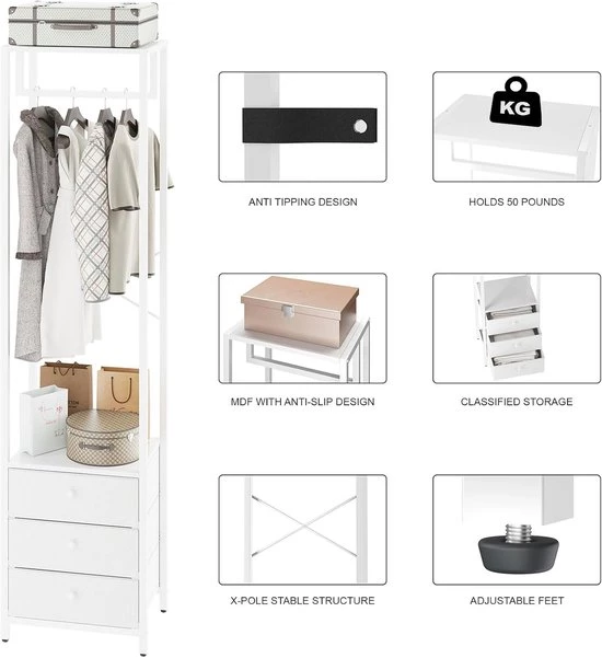 Coat rack with drawer and clothes rack - high wardrobe organizer - white (9506435737258)