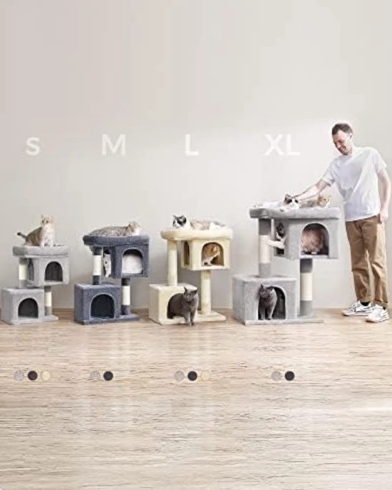 [Climbing, Scratching, Relaxing - All in One] Multi-level design makes it easy to get on and off. 2 sisal poles satisfy your furry friends' natural scratching instincts. The platform at the top is ideal for observation. 2 caves are comfortable for relaxing