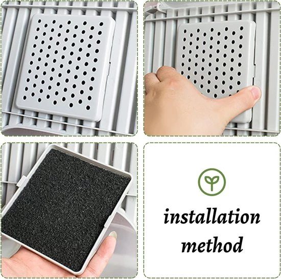 Advantages:No more problems with unwanted odors thanks to these handy cat litter filters. The activated carbon ensures that the peculiar odor in the litter box is absorbed, which keeps the air fresher. The filters are made of high-quality materials and are safe to use.