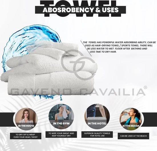 Advantages:These extra large bath towels are ideal for everyday use at home, the gym, the beach or even in hotels. The 100% ring-spun cotton fabric ensures that they dry quickly and are comfortable to use.
