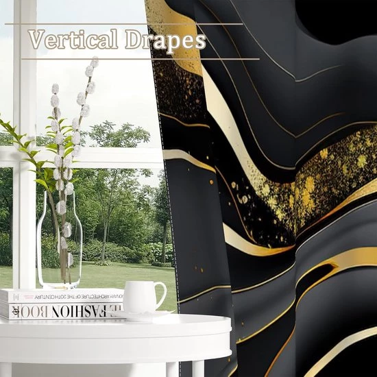 Transform your living room with stylish blackout curtains in a beautiful black sky design with gold accents. These elegant curtains , measuring 132 x 214 cm , are not only a feast for the eyes but also offer functionality and comfort.