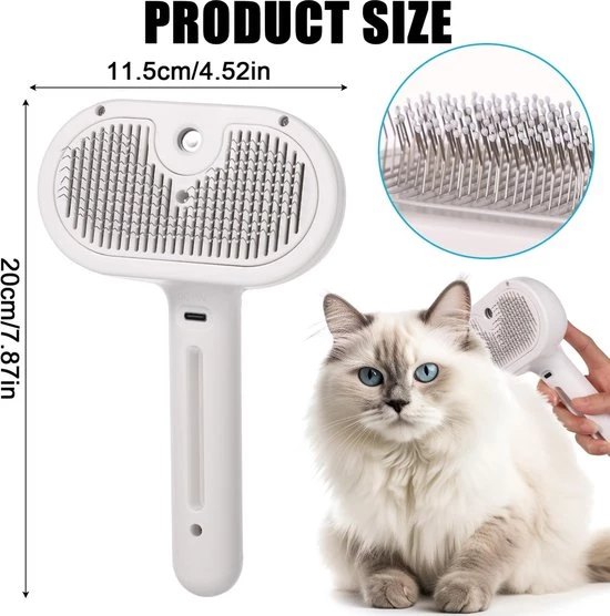 Discover the versatile and innovative Steam Cat Brush, designed to take your pet grooming to the next level. This brush combines the convenience of a rechargeable spray function with a skin-friendly design, making it an ideal choice for both cats and dogs.