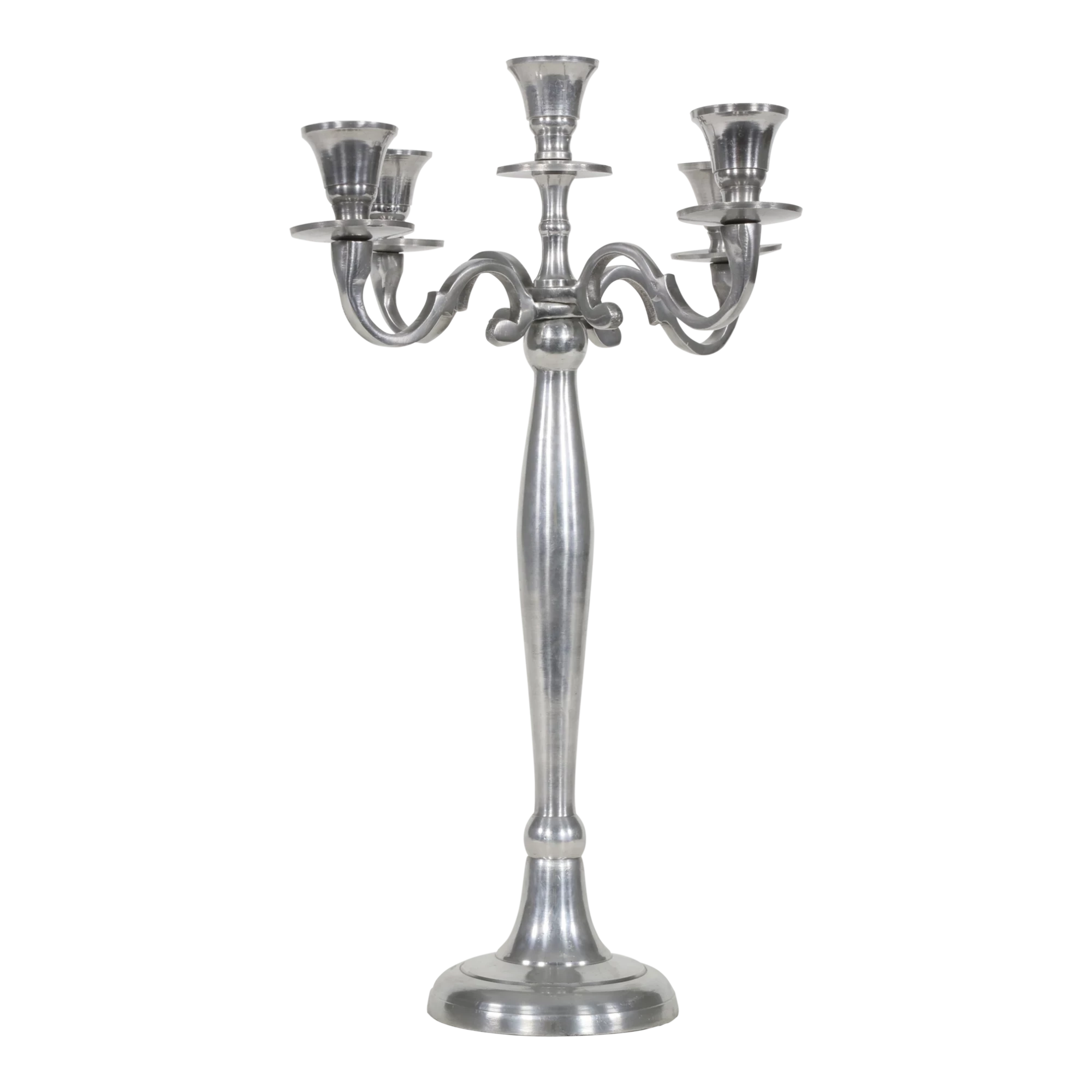 Add a touch of elegance to your interior with this stylish aluminum candle holder. The polished finish provides a chic look in any room.