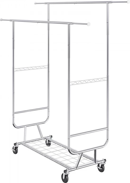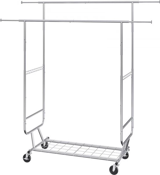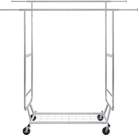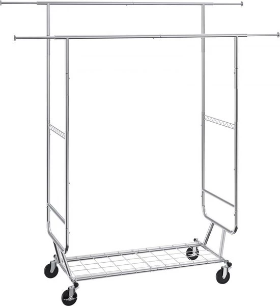Roll-up clothes rack coat rack 2 clothes rails, adjustable 1282-1914 mm / 1443-1867 mm (L/H), freestanding steel clothes rack 59 + 136 kg load capacity, heavy duty silver (6097718795704)