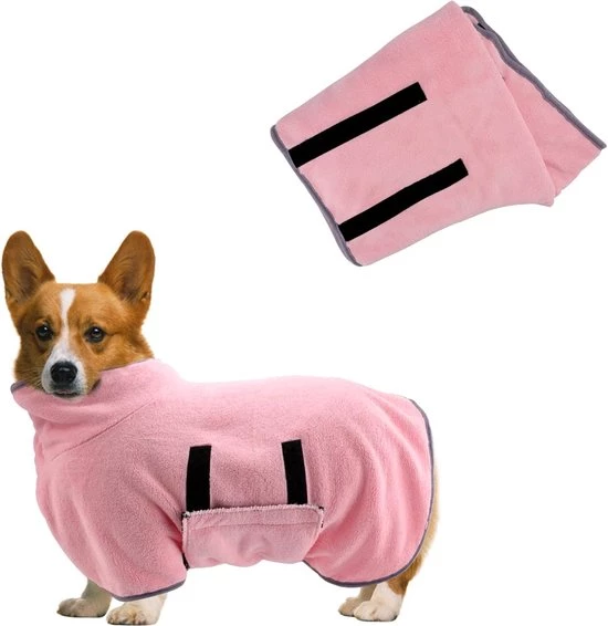 Dog Drying Coat, Dog Towel, Bathrobe for Small, Medium Dogs, Bathrobe, Super Absorbent Dog Drying Towel, Soft Adjustable Puppy Bathrobe After Shower (M/50cm, Pink) (7595980221130)