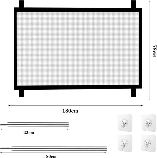 This high-quality dog stair gate is made of durable, tear-resistant nylon material, making it exceptionally robust and durable. Measuring 180 x 78 cm, it's ideal for various doorways and stairways. Thanks to its easy, tool-free installation, requiring no drilling or tools, it can be easily attached to doors, stairways, and entryways without causing damage to walls. This makes it perfect for rental properties.