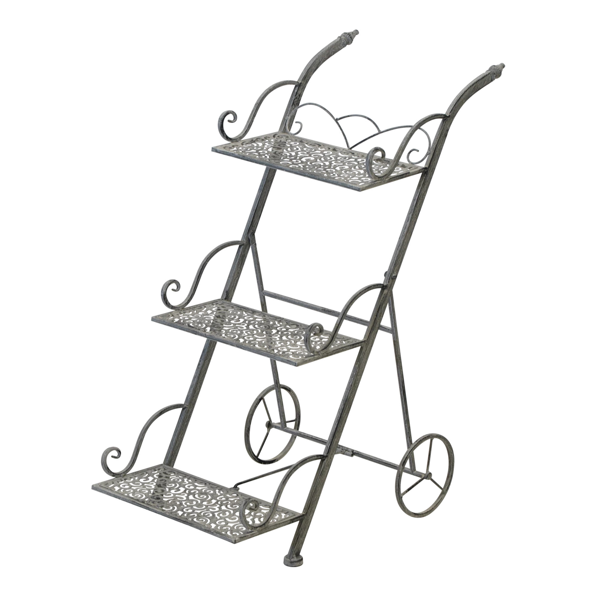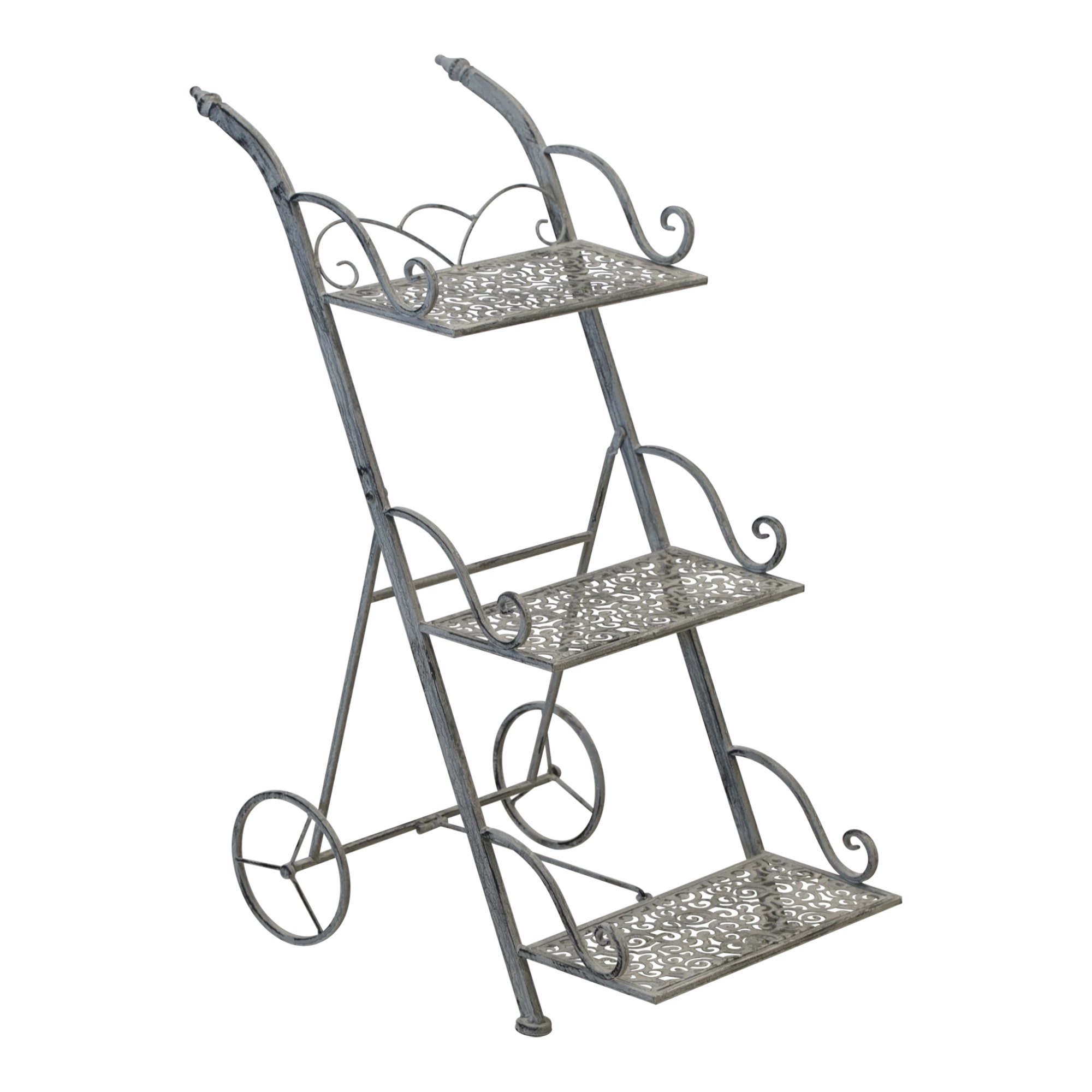 Functional serving stand on wheels, perfect as a serving cart or mobile storage. Three levels provide space for decoration or consumables.
