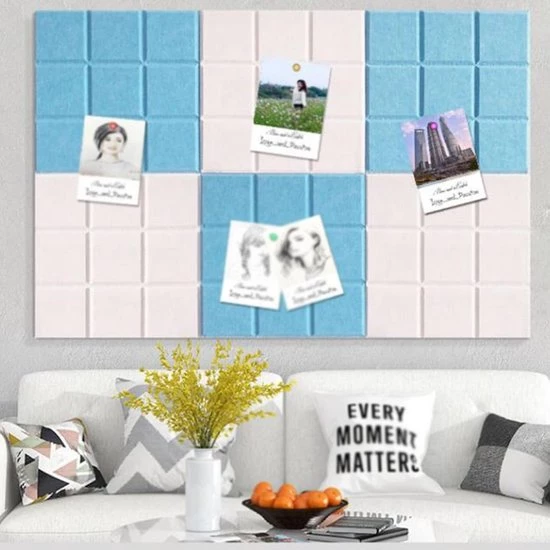 Self-Adhesive Bulletin Board : Tear off the protective paper on the back of the bulletin board and place the felt bulletin board anywhere you like—no tools required. (Note: Be sure to clean the wall before use.)
