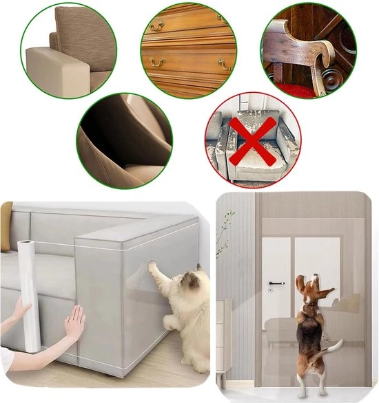 Scratch-Resistant Cat Protector - Made of durable and wear-resistant PVC, this cat scratch protector effectively prevents cat claws from damaging sofas and furniture. The smooth and elastic surface of the cat protector forms a flexible barrier that respects the natural behavior of cats and dogs. Ideal for pet grooming and protecting furniture, this cat scratch protector provides reliable protection.