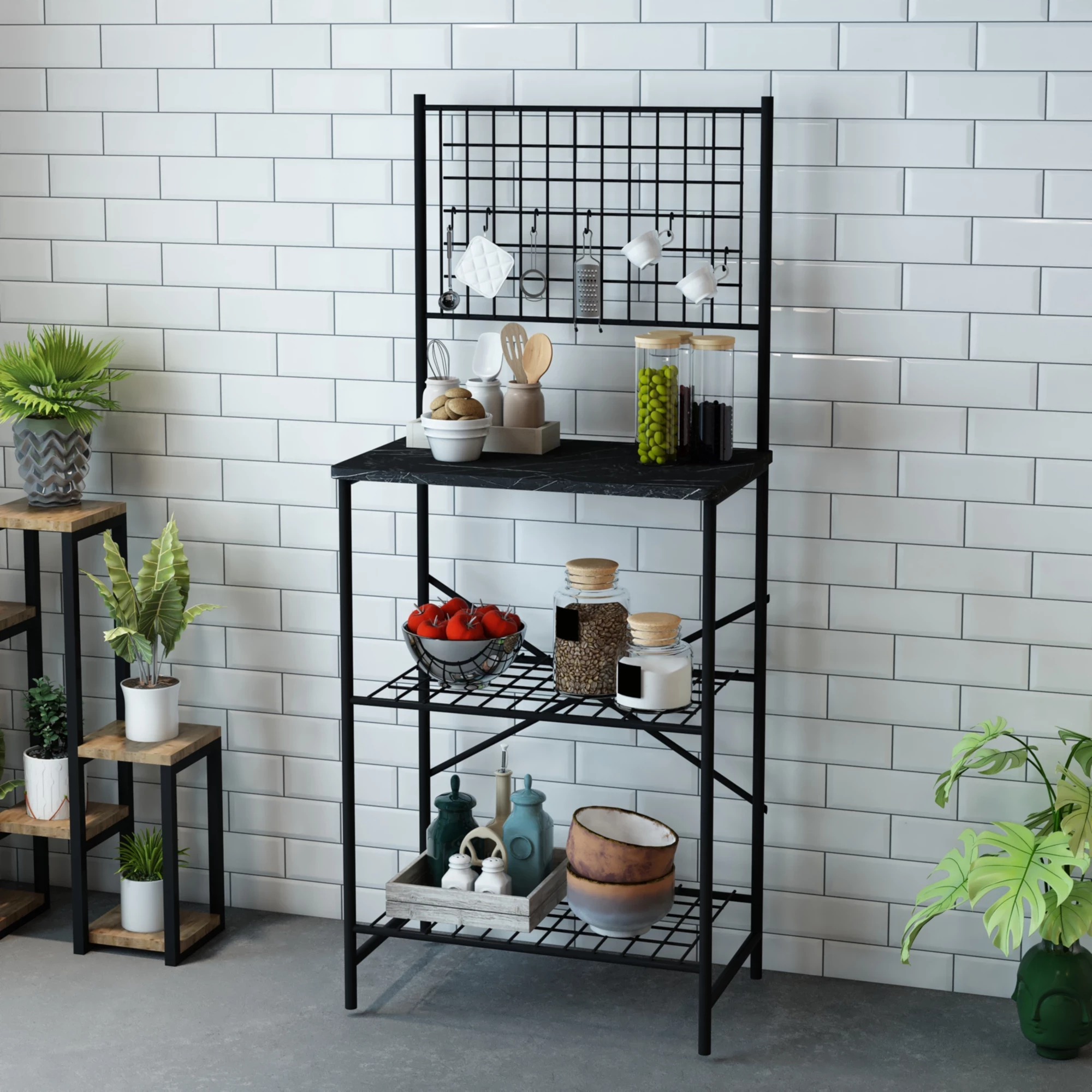 This stylish and practical standing rack has 1 work surface and a total of 2 shelves. For example, it is ideal for storing kitchen appliances in your kitchen, such as a microwave, toaster or kettle.