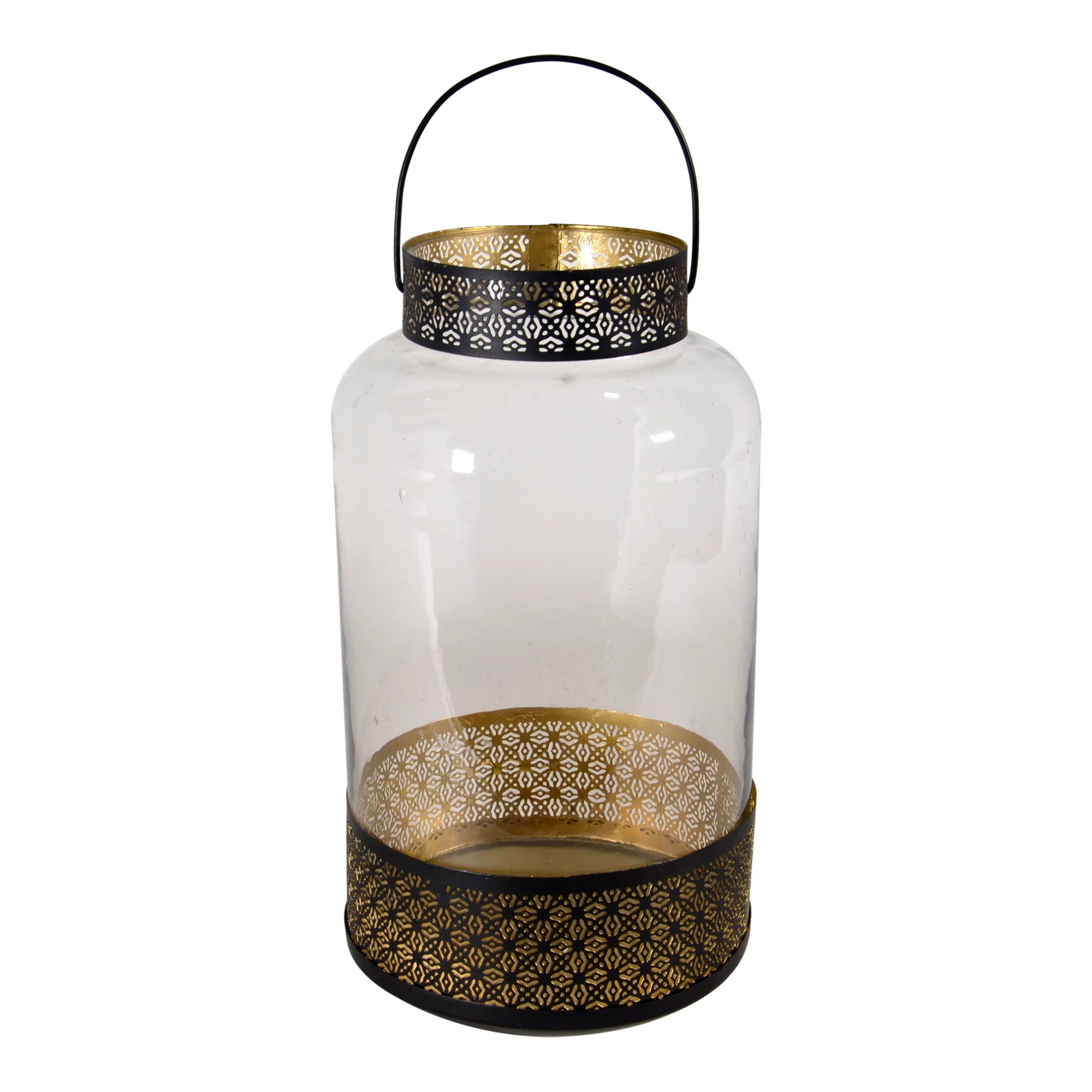 Lantern - Ø20x37cm - Glass - Steel - Black and Gold
