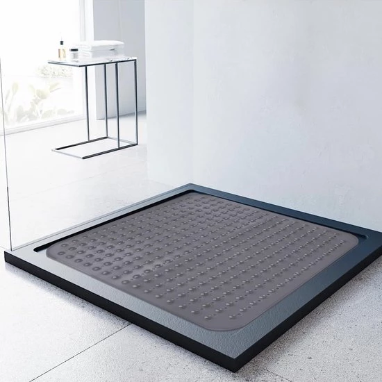 Non-slip shower mat, 80 x 80 cm, shower mat, non-slip mat with suction cups for shower or bathtub, large square shower tray mat (transparent gray, 80 x 80 cm) (4801288899241)