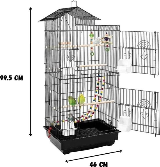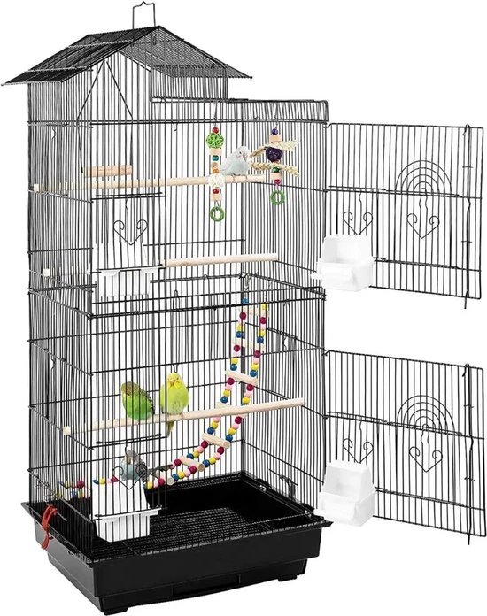 Our parrot cage provides a spacious living environment where your bird can move and fly freely. The generous dimensions ensure that your parrot has enough space to be active and feel comfortable, which is essential for its physical and mental well-being.
