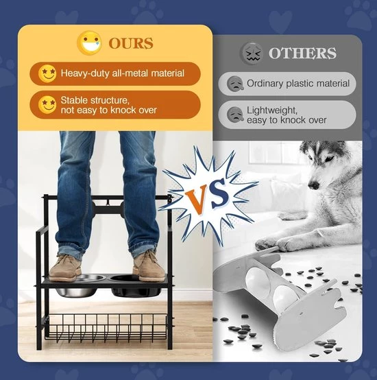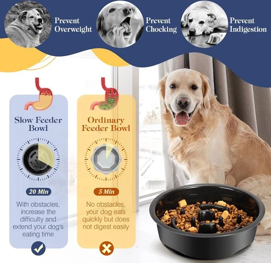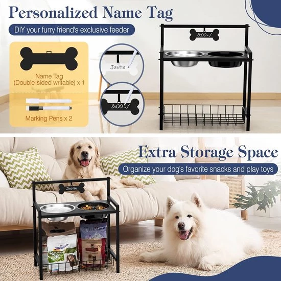 Raised Dog Bowl, Slow Feeding, Dog Bowl, Adjustable Height, with Stainless Steel Bowls and Storage Rack, Raised Dog Feeding Bowl for Medium and Large Dogs (8998339838284)