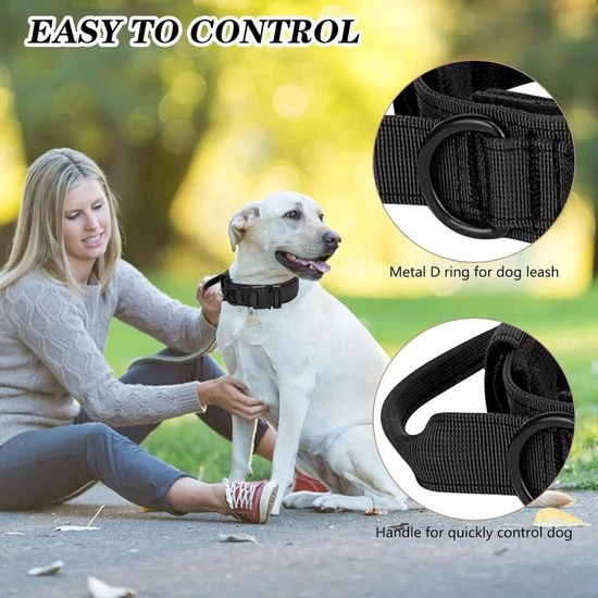 【Adjustable Size】 Adjust the length of the tactical dog collar by moving the velcro. The collar can be adjusted as the dog grows. There are 3 sizes and 3 colors available. M 37-45cm; L 45-53cm, XL 55-63cm. Please measure your dog's neck carefully according to the size chart (refer to the size picture) before ordering.