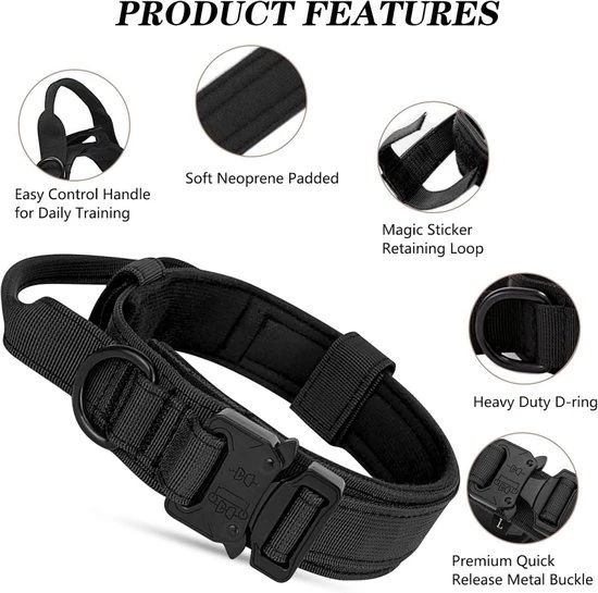 【Adjustable Size】 Adjust the length of the tactical dog collar by moving the velcro. The collar can be adjusted as the dog grows. There are 3 sizes and 3 colors available. M 37-45cm; L 45-53cm, XL 55-63cm. Please measure your dog's neck carefully according to the size chart (refer to the size picture) before ordering.