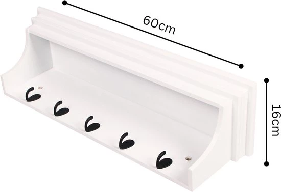 Wall Coat Rack With Hat Shelf - With Shelf & Hanging - 60x16x16 Cm - Wood (8721184112656)