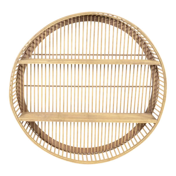 Decorative wall shelf made of bamboo in natural color. Perfect for displaying small accessories or plants.
