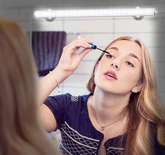 This mirror light is wireless and easy to attach to any mirror. The touch sensor allows you to easily switch the light on and off and adjust the brightness to your needs.