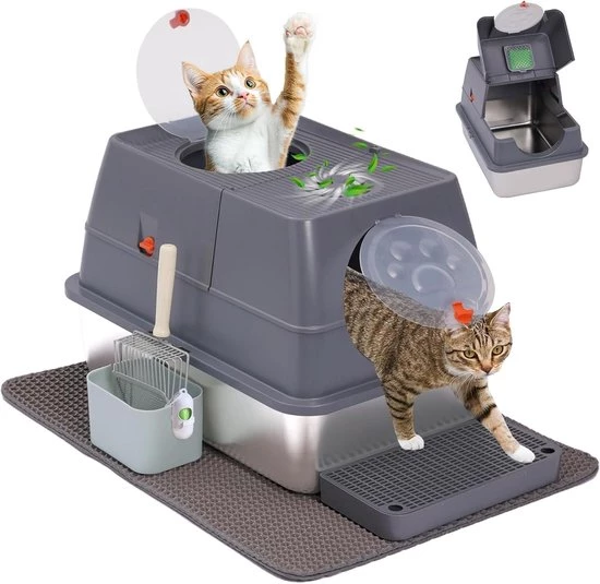 Choose between two entry options – from above or from the front – to suit your cat's personality and physical condition. The extra large size of 60 x 40 x 40 cm provides ample space for cats, making it comfortable even for large breeds up to 11.2 kg. With a capacity of over 20 liters, you can enjoy a clean box for 15 to 30 days before needing to change the litter.